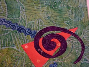 Just about the time we got the Haiku prompt word for September I was itching to do another fiber/ribbon collage quilt. The perfect opportunity arose when we were presented with the word “Rhapsody”.
