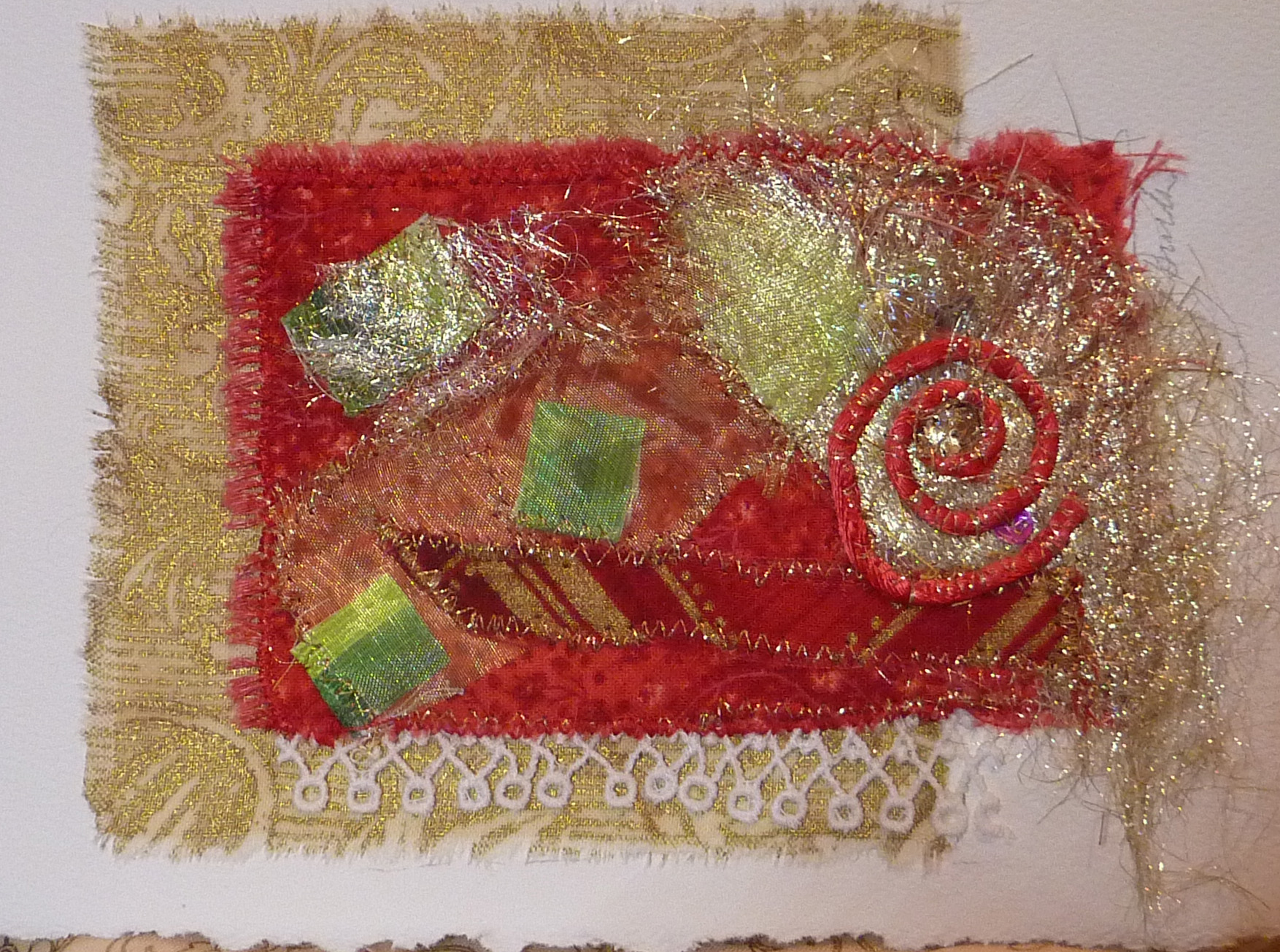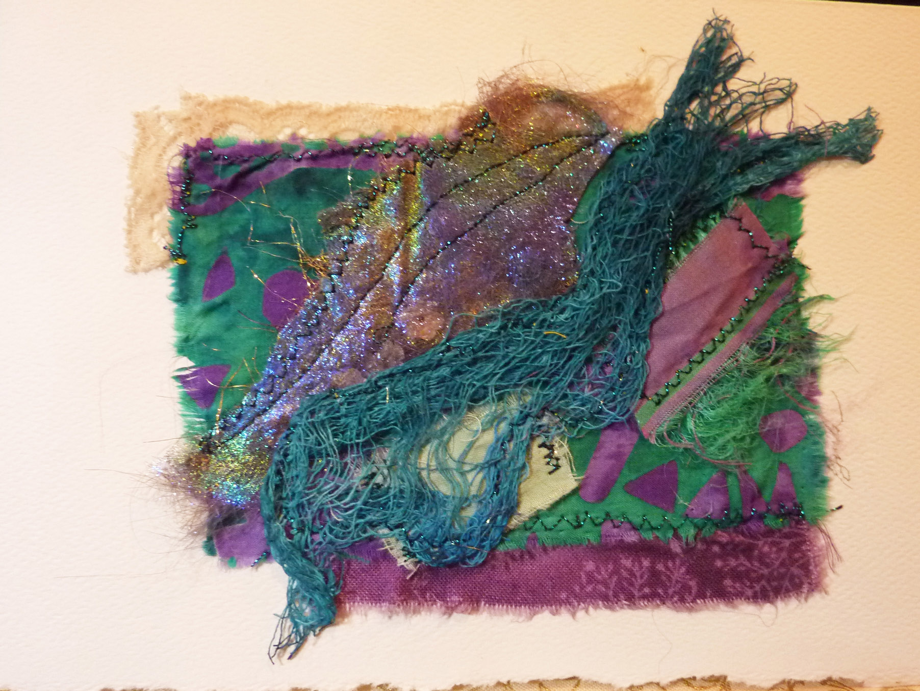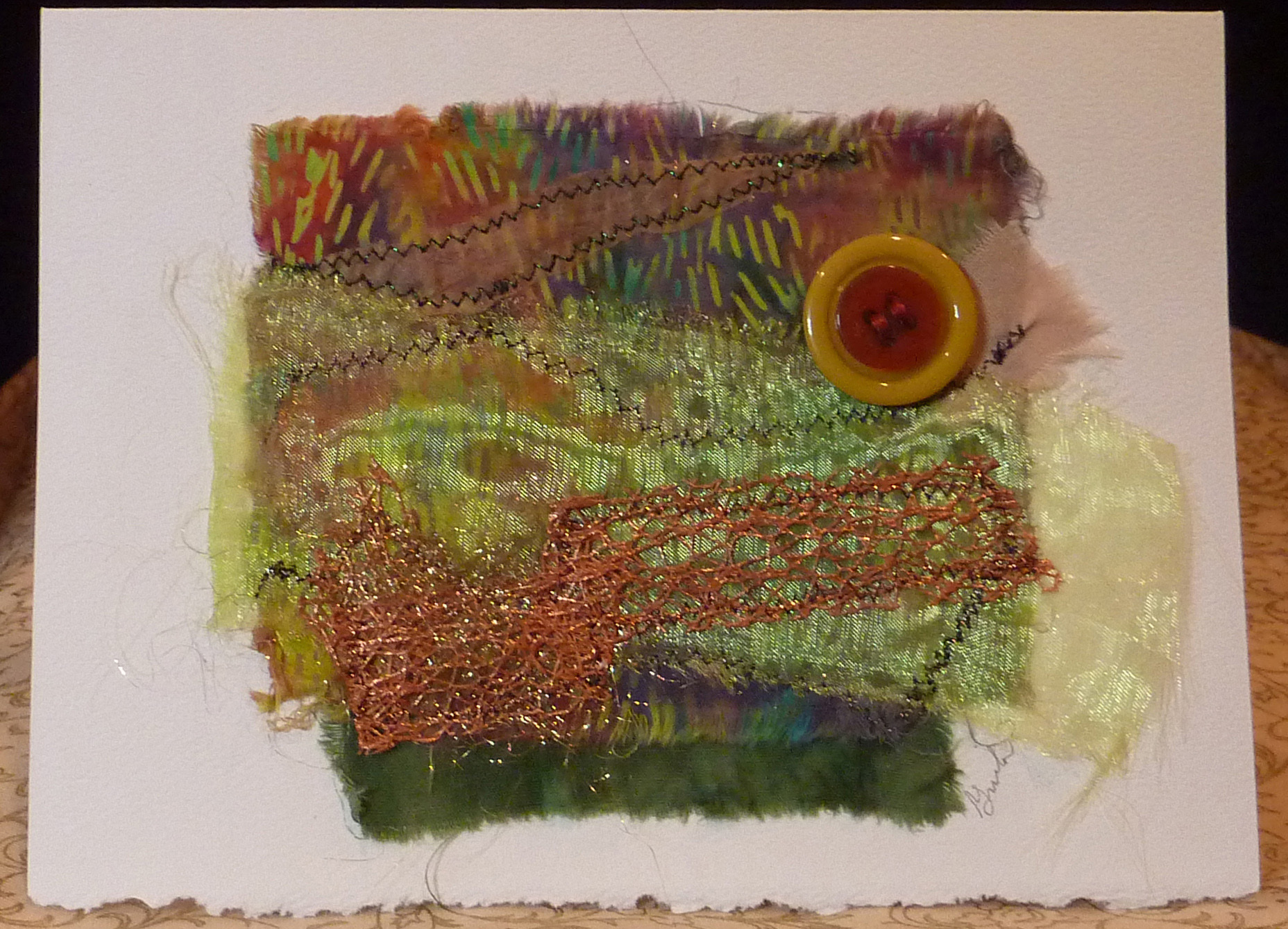 They are mini Fiber Collages mounted on an acid free 5 by 7 inch Strathmore deckled edge card. The card itself is blank inside so you can write the message of your choice OR just put the card in a frame. Either way, if it’s a gift it will be sure to be enjoyed for a long time.